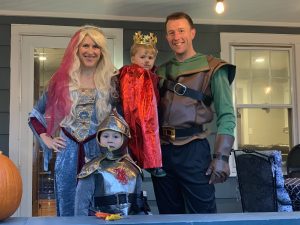 Happy Halloween! Everyone had a great time. We all trick or treated. Charlie counted 64 pieces of candy and shot bow and arrows at cardboard targets. Dean ate candy for the first time. Needless to say, Dean loves candy.